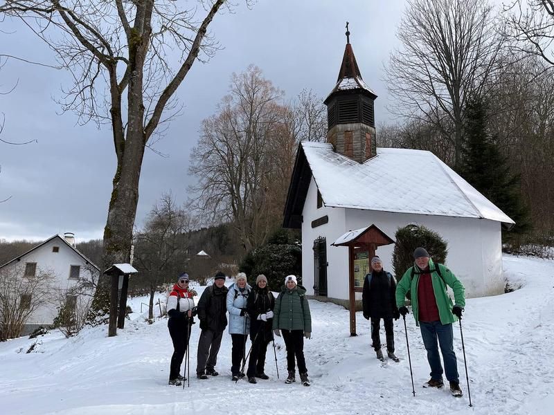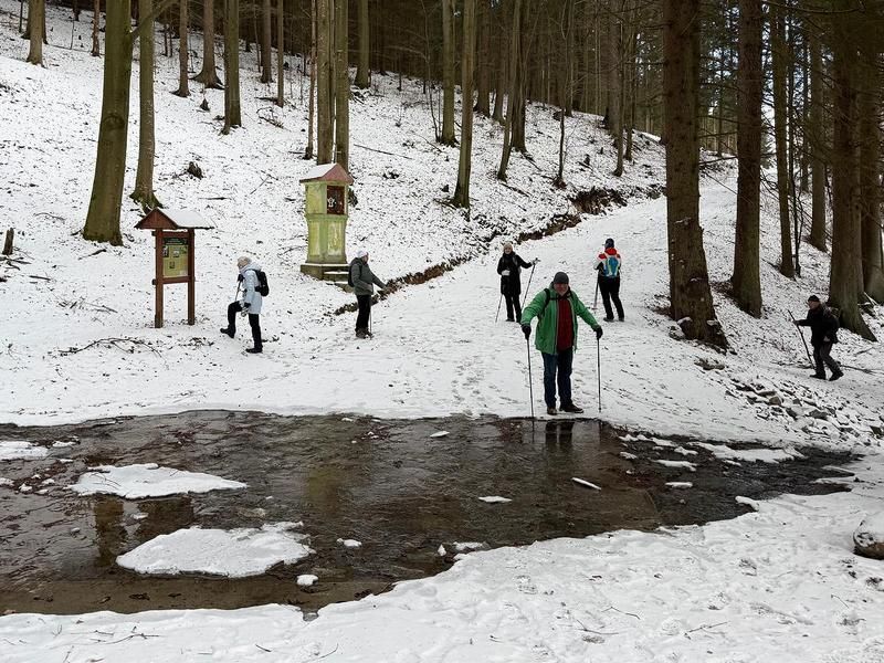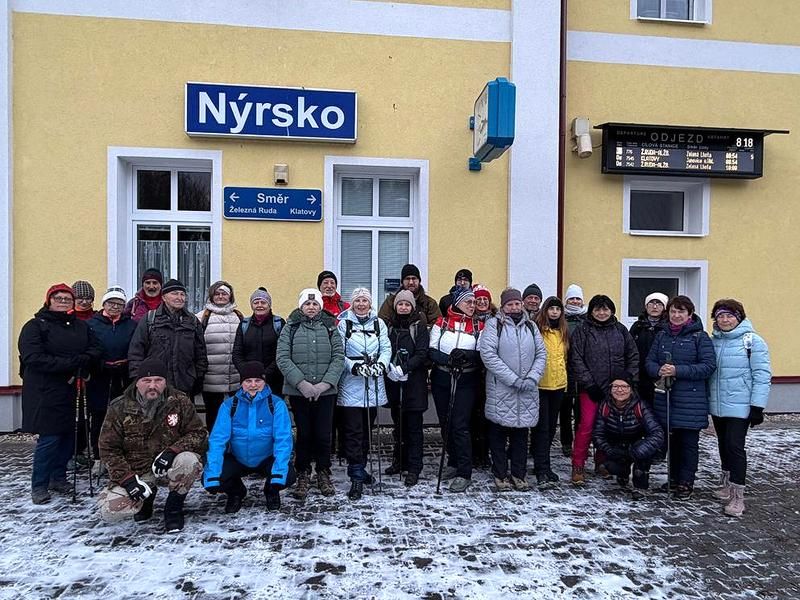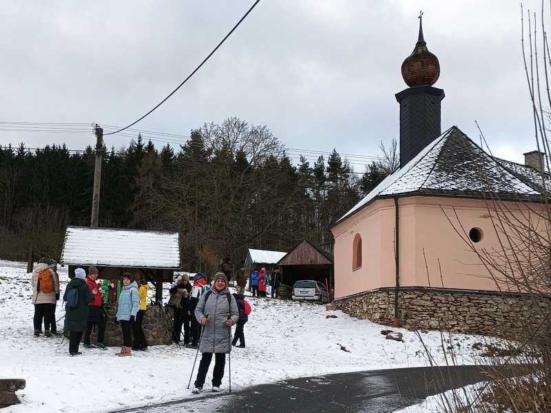 Vycházka konaná vždy v sobotu před svátkem Tří králů nás tentokrát seznámila s částí naučné stezky Po stopách formanů u Dešenic. Náš pochod začal v Nýrsku, kam jsme dojeli vlakem, a z nádraží jsme vyrazili přes Hodousice do Žíznětic. Tam jsme se napojili na zmíněnou naučnou stezku, která nás dovedla do Matějovic. Od matějovické kaple Panny Marie už jsme překonali jen poslední kopec na přibližně třináctikilometrové trase (někteří místo toho volili trochu delší závěr kolem lesní kaple sv. Jana) a dorazili jsme do restaurace hotelu Zach u železniční stanice v Zelené Lhotě, kde jsme společným posezením a občerstvením výlet zakončili. Po cestě provázelo celkem 28 účastníků vycházky na poměry posledních dnů překvapivě příjemné počasí a dobrá viditelnost umožnila hlavně v závěru cesty pěkné výhledy na Dešenice, Nýrsko a okolní krajinu.